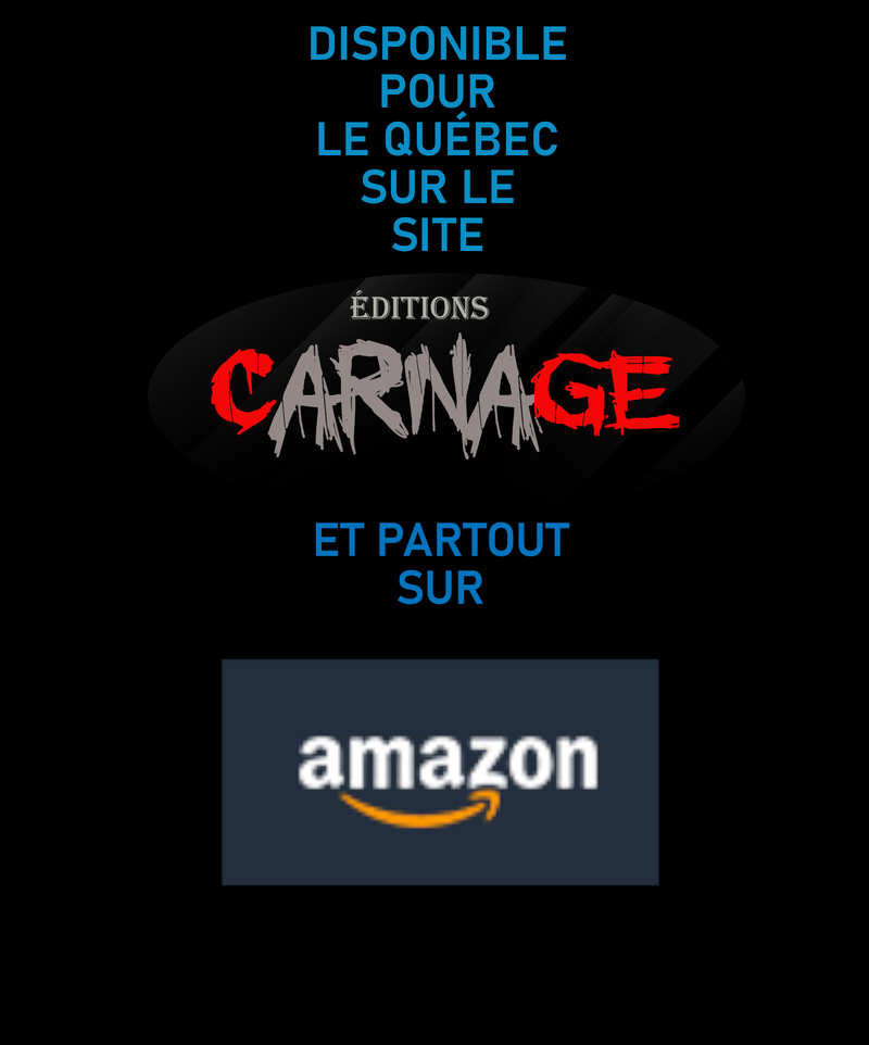 Éditions Carnage est une entreprise passionnée par l'art de raconter des histoires qui glacent le sang. Fondée par des amateurs d'horreur pour des amateurs d'horreur, notre mission est d'offrir une expérience de lecture inoubliable à travers une sélection de romans qui captiveront aussi bien les jeunes lecteurs que les adultes. Nous croyons que le genre de l'horreur a le pouvoir de stimuler l'imaginaire et d'éveiller les émotions, c'est pourquoi nous nous efforçons de proposer des titres qui sont à la fois diversifiés et de haute qualité. Que vous soyez en quête d'une lecture effrayante pour une soirée orageuse ou que vous souhaitiez découvrir de nouveaux horizons littéraires, Éditions Carnage est là pour répondre à vos attentes. Nous nous engageons à vous offrir une diversité grandissante de lecture pour que vous puissiez profiter de chaque style d'horreur.