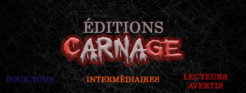 Éditions Carnage est une entreprise passionnée par l'art de raconter des histoires qui glacent le sang. Fondée par des amateurs d'horreur pour des amateurs d'horreur, notre mission est d'offrir une expérience de lecture inoubliable à travers une sélection de romans qui captiveront aussi bien les jeunes lecteurs que les adultes. Nous croyons que le genre de l'horreur a le pouvoir de stimuler l'imaginaire et d'éveiller les émotions, c'est pourquoi nous nous efforçons de proposer des titres qui sont à la fois diversifiés et de haute qualité. Que vous soyez en quête d'une lecture effrayante pour une soirée orageuse ou que vous souhaitiez découvrir de nouveaux horizons littéraires, Éditions Carnage est là pour répondre à vos attentes. Nous nous engageons à vous offrir une diversité grandissante de lecture pour que vous puissiez profiter de chaque style d'horreur.